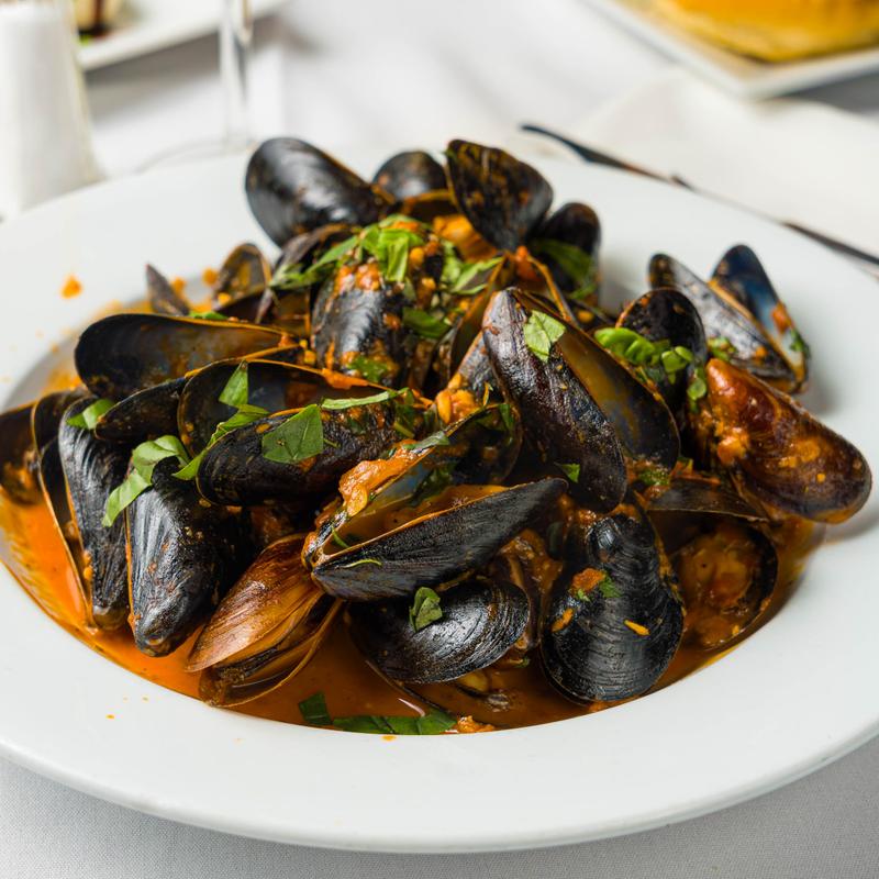 Fresh Long Island Mussels served in a spinach cream sauce