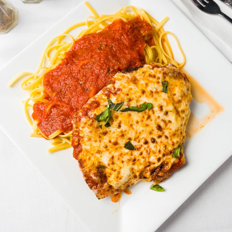 Served over linguini with homemade marinara sauce & fresh mozzarella